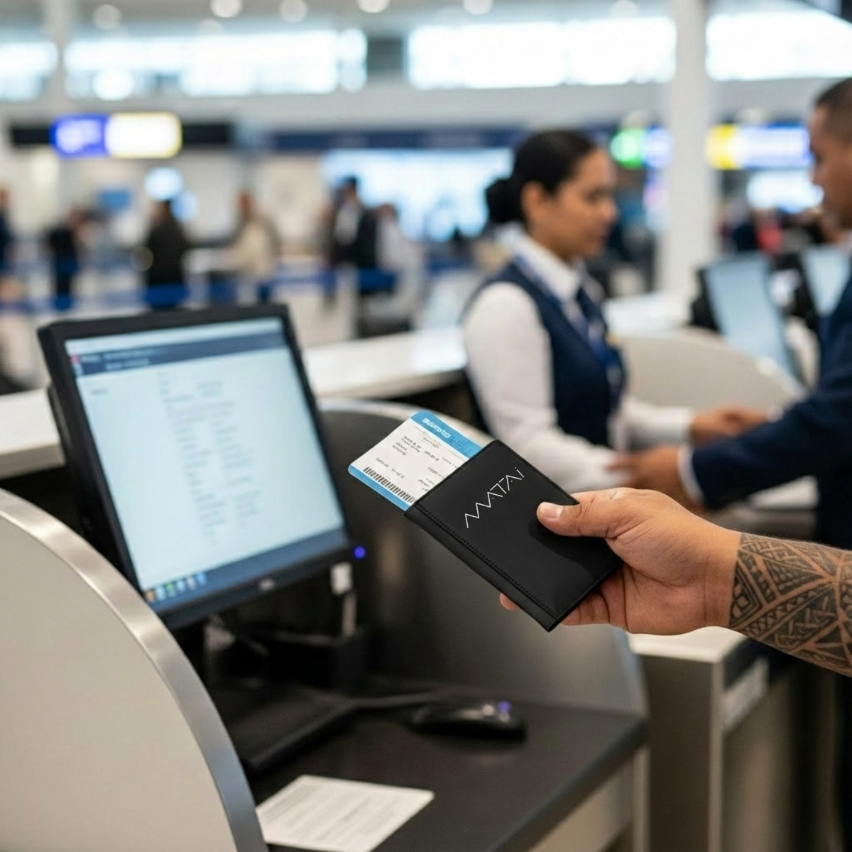 Whether you are heading overseas for work, reuniting with loved ones, or exploring a new destination, the Matai-inspired passport holder keeps your essentials protected while showcasing your heritage. With built-in RFID blocking technology for modern security and interior pockets to organise your passport, cards, and documents, it is designed to meet the demands of proud and practical travellers.